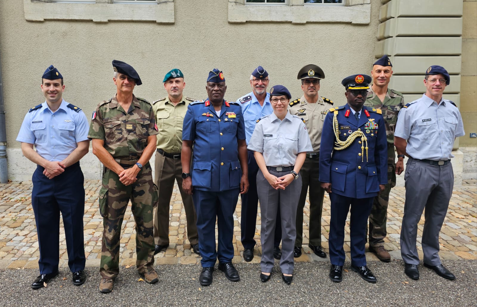 Uganda’s Defence Attache in Switzerland, Brig. General Kazahura (centre front row) with colleagues attend a Multi-lateral Defence Cooperation on Bio-security and Bio-safety meeting. Chief of Military Protocol for the Swiss Defence Forces is to his left.
