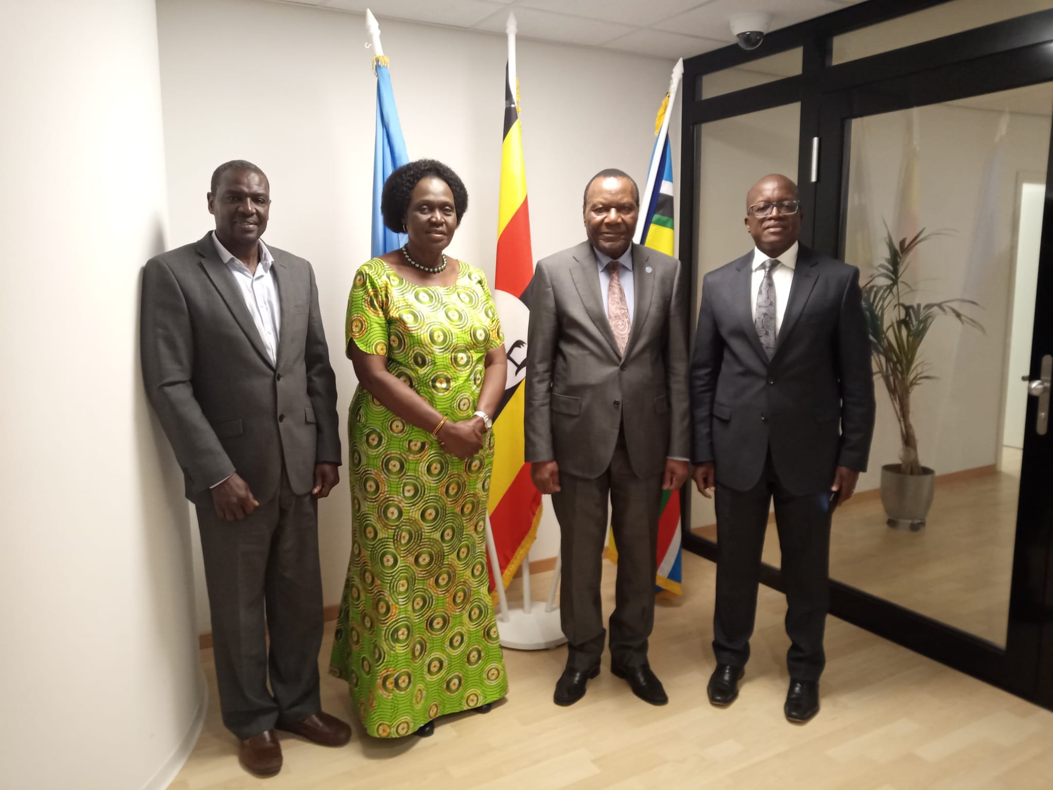 The Minister paid a courtesy call to the Permanent Mission; in attendance was the Permanent Representative, Ambassador Marcel R. Tibaleka, Deputy Permanent Representative, Ambassador Arthur Kafeero; Mr Allan Ndagije and Mr Milwen Owaro. The discussions focused on environmental impacts arising from climate changes the role of Uganda and the international community on mitigation. Issues on climate credit and climate trade was discussed in depth along side a mention by the PR on the Mission and its mandate.
